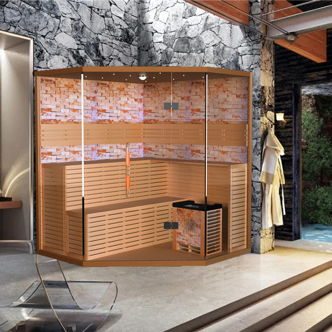 Culture Stone is a decorative stone used inside the Finland Luxury Traditional Steam Sauna Room. It features a natural rock texture and unique patterns, adding a rustic touch to the sauna's interior.